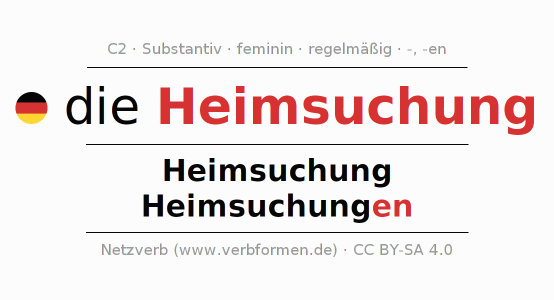 - Singular: die Heimsuchung, der Heimsuchung, der Heimsuchung, die Heimsuchung