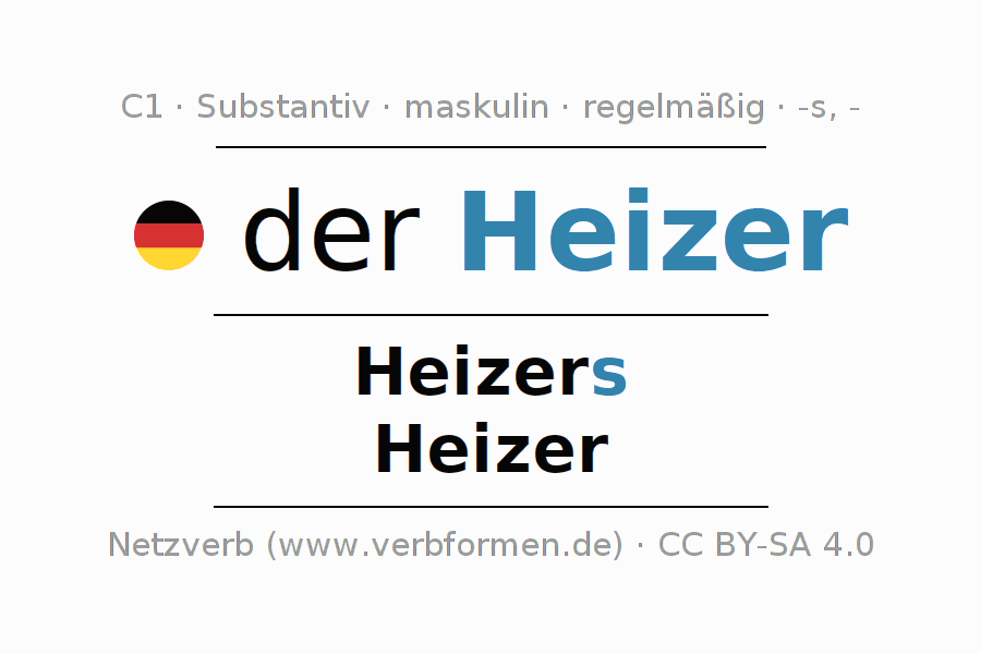 - Plural: die Heizer, der Heizer, den Heizern, die Heizer