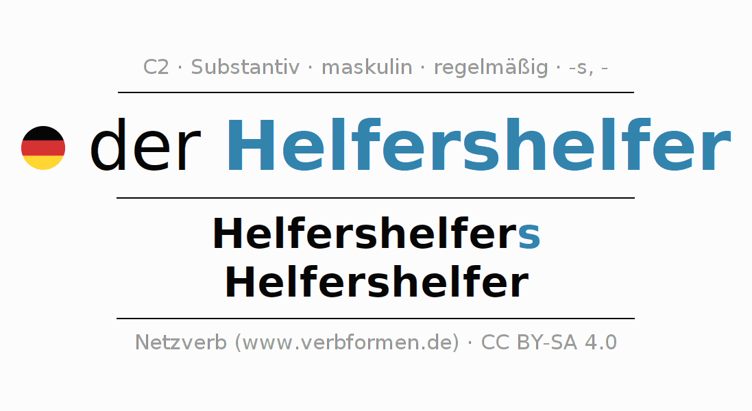 - Singular: der Helfershelfer, des Helfershelfers, dem Helfershelfer, den Helfershelfer