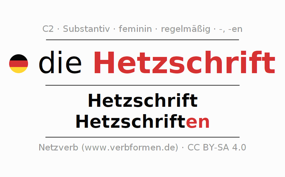 | Nom. | die Hetzschrift | die Hetzschriften |