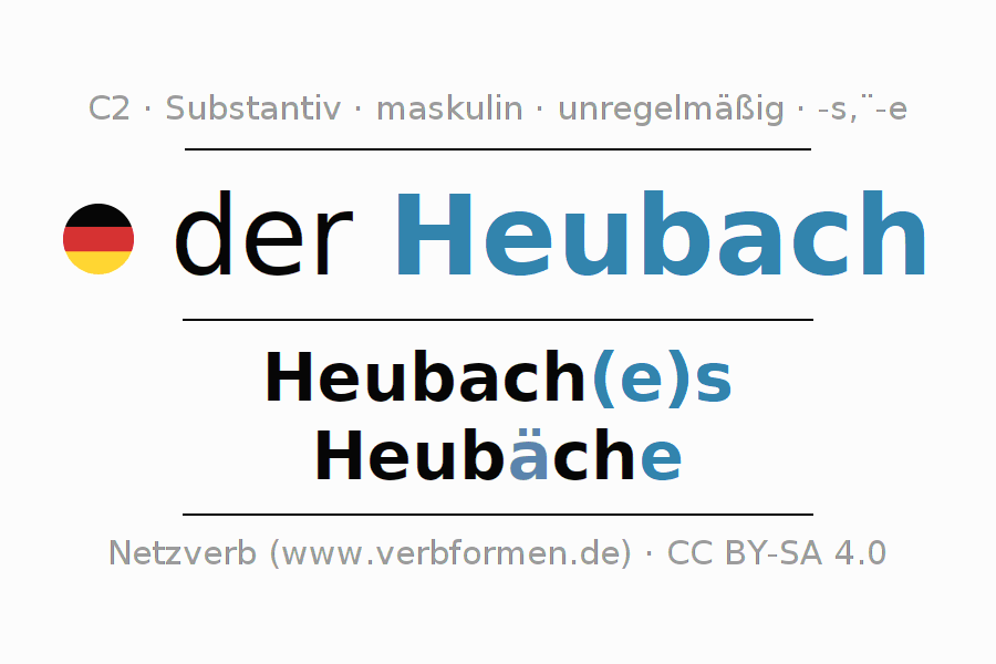 - Plural: die Heubäche, der Heubäche, den Heubächen, die Heubäche