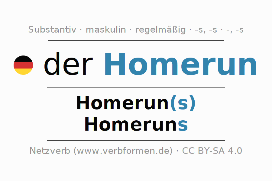 - Plural: die Homeruns, der Homeruns, den Homeruns, die Homeruns