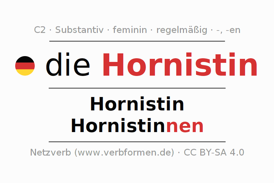- Singular: die Hornistin, der Hornistin, der Hornistin, die Hornistin