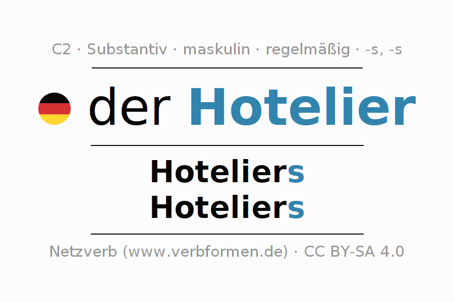 - Plural: die Hoteliers, der Hoteliers, den Hoteliers, die Hoteliers