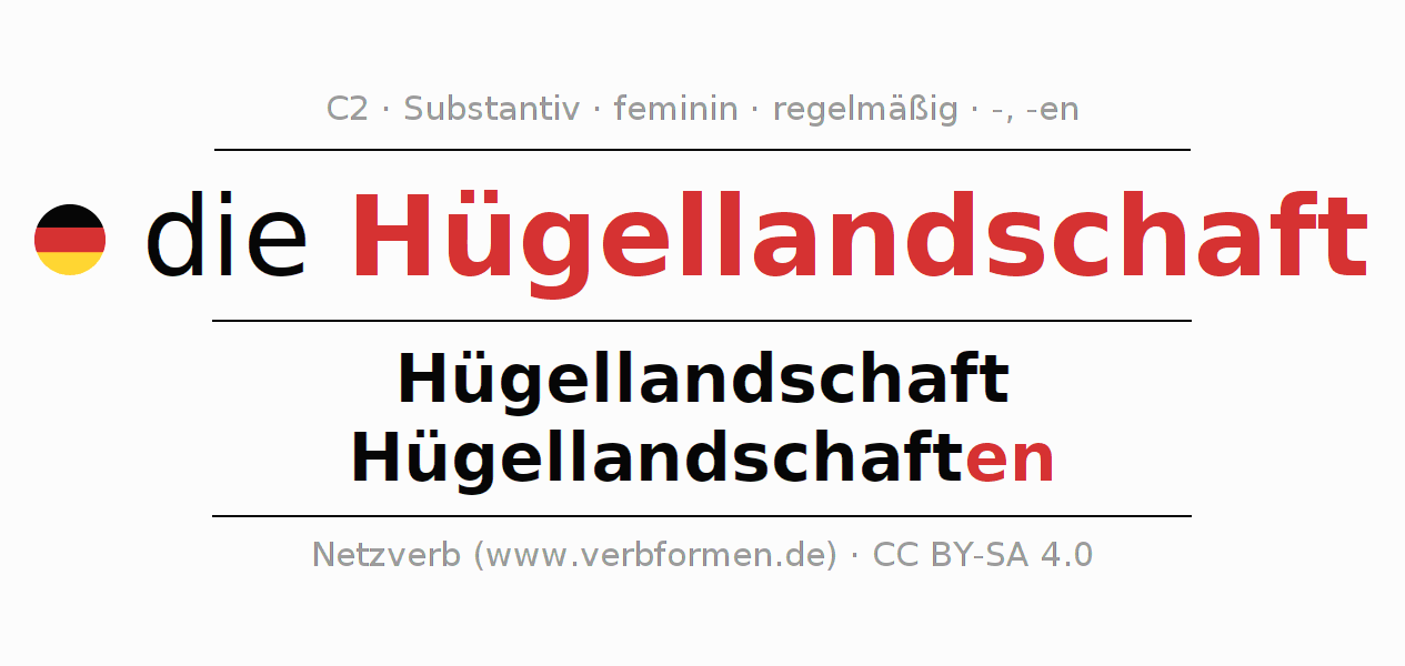 - Singular: die Hügellandschaft, der Hügellandschaft, der Hügellandschaft, die Hügellandschaft