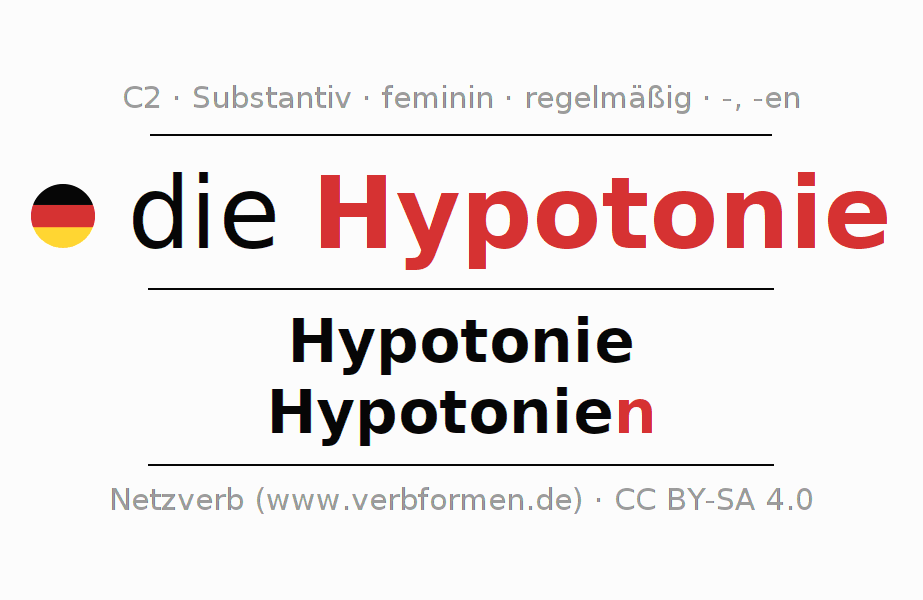 - Singular: die Hypotonie, der Hypotonie, der Hypotonie, die Hypotonie