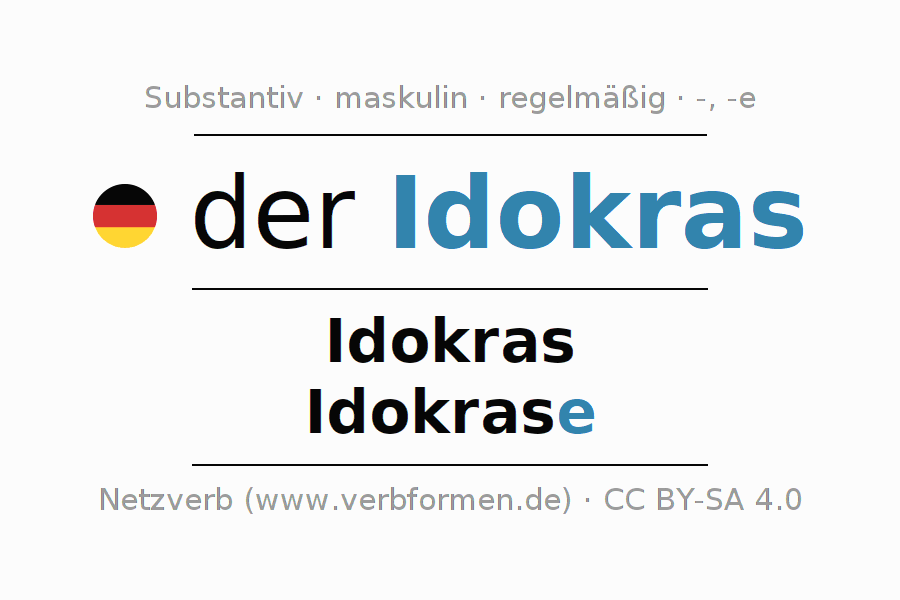 - Singular: der Idokras, des Idokras, dem Idokras, den Idokras