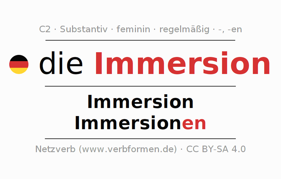 - Singular: die Immersion, der Immersion, der Immersion, die Immersion