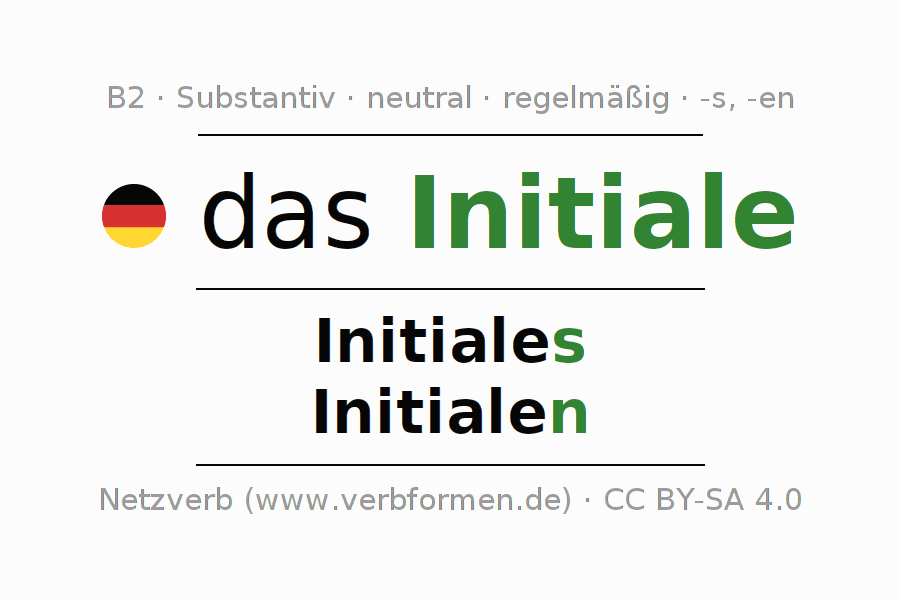 - Plural: die Initialen, der Initialen, den Initialen, die Initialen