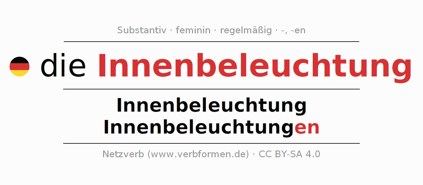 - Singular: die Innenbeleuchtung, der Innenbeleuchtung, der Innenbeleuchtung, die Innenbeleuchtung