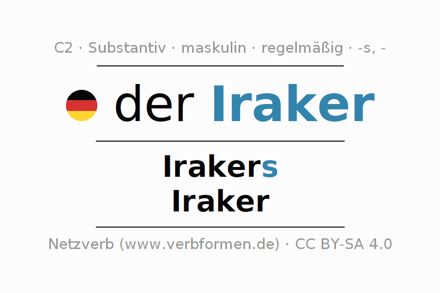 - Plural: die Iraker, der Iraker, den Irakern, die Iraker