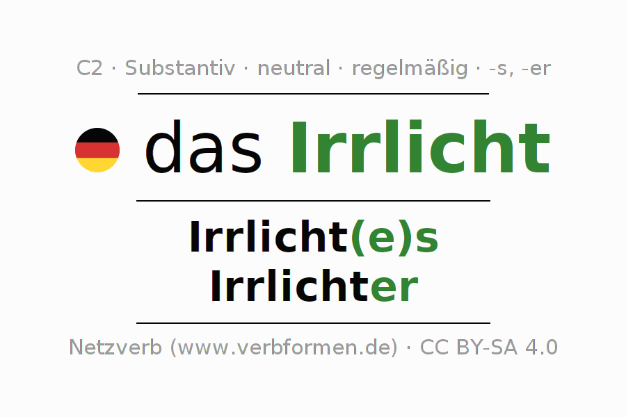 - Plural: die Irrlichter, der Irrlichter, den Irrlichtern, die Irrlichter