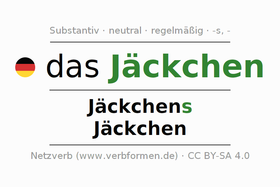 - Singular: das Jäckchen, des Jäckchens, dem Jäckchen, das Jäckchen