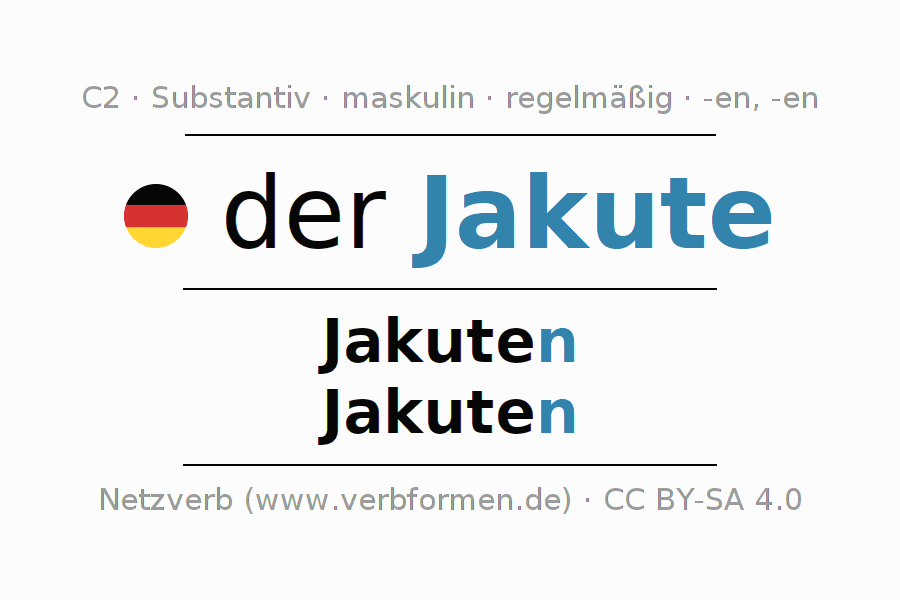 - Singular: der Jakute, des Jakuten, dem Jakuten, den Jakuten