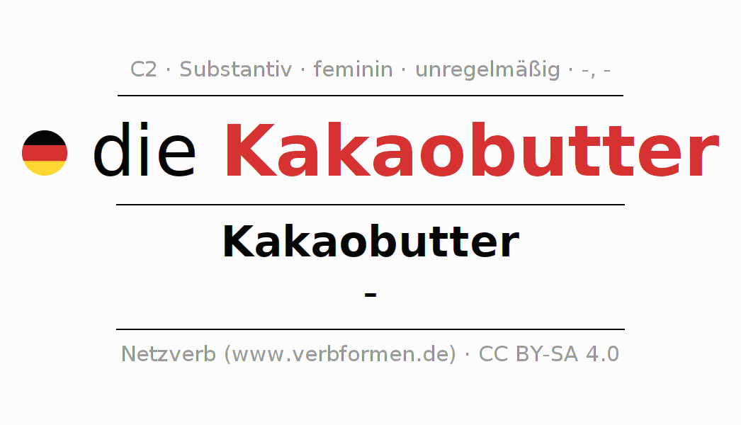 - Singular: die Kakaobutter, der Kakaobutter, der Kakaobutter, die Kakaobutter