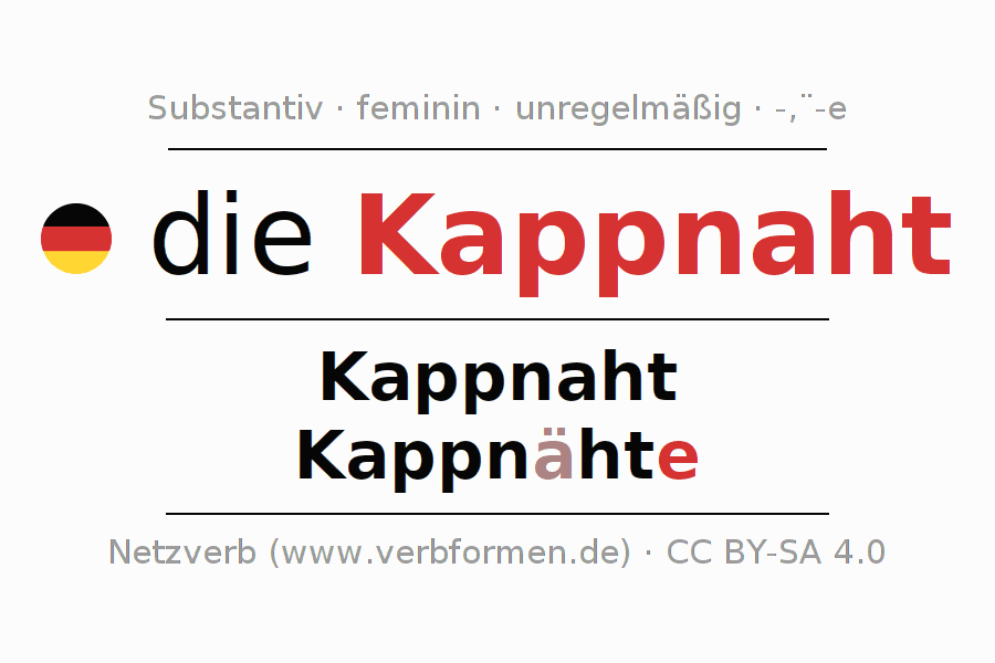 | Nom. | die Kappnaht | die Kappnähte |