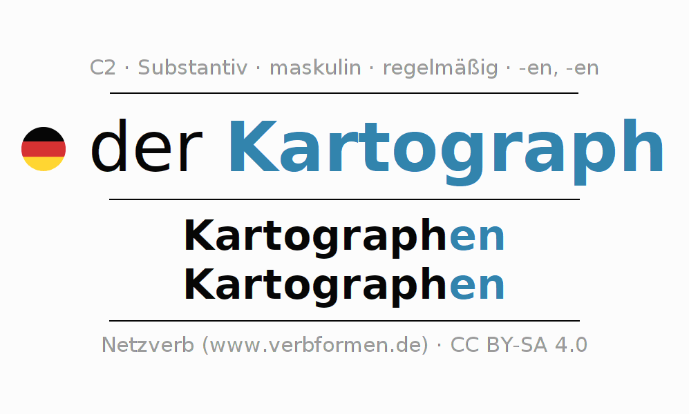 - Plural: die Kartographen, der Kartographen, den Kartographen, die Kartographen