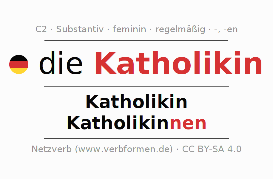 - Singular: die Katholikin, der Katholikin, der Katholikin, die Katholikin
