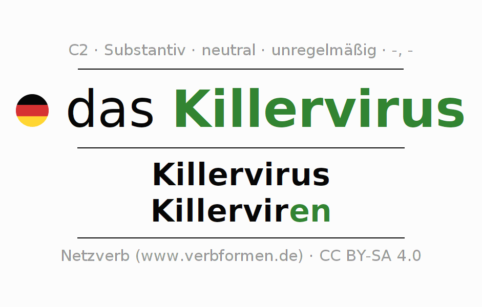 - Singular: das Killervirus, des Killervirus, dem Killervirus, das Killervirus
