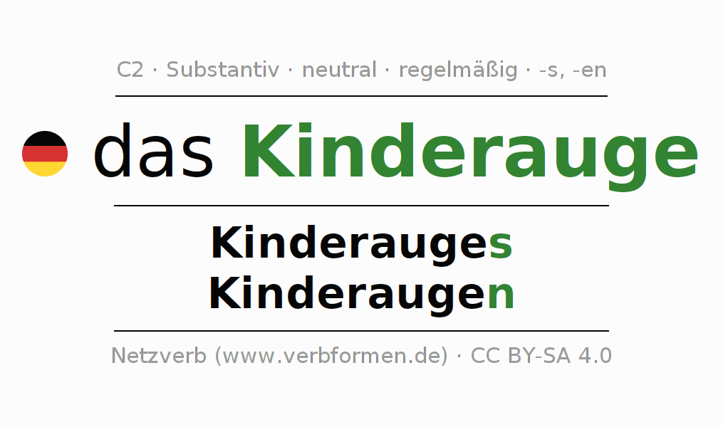 - Plural: die Kinderaugen, der Kinderaugen, den Kinderaugen, die Kinderaugen