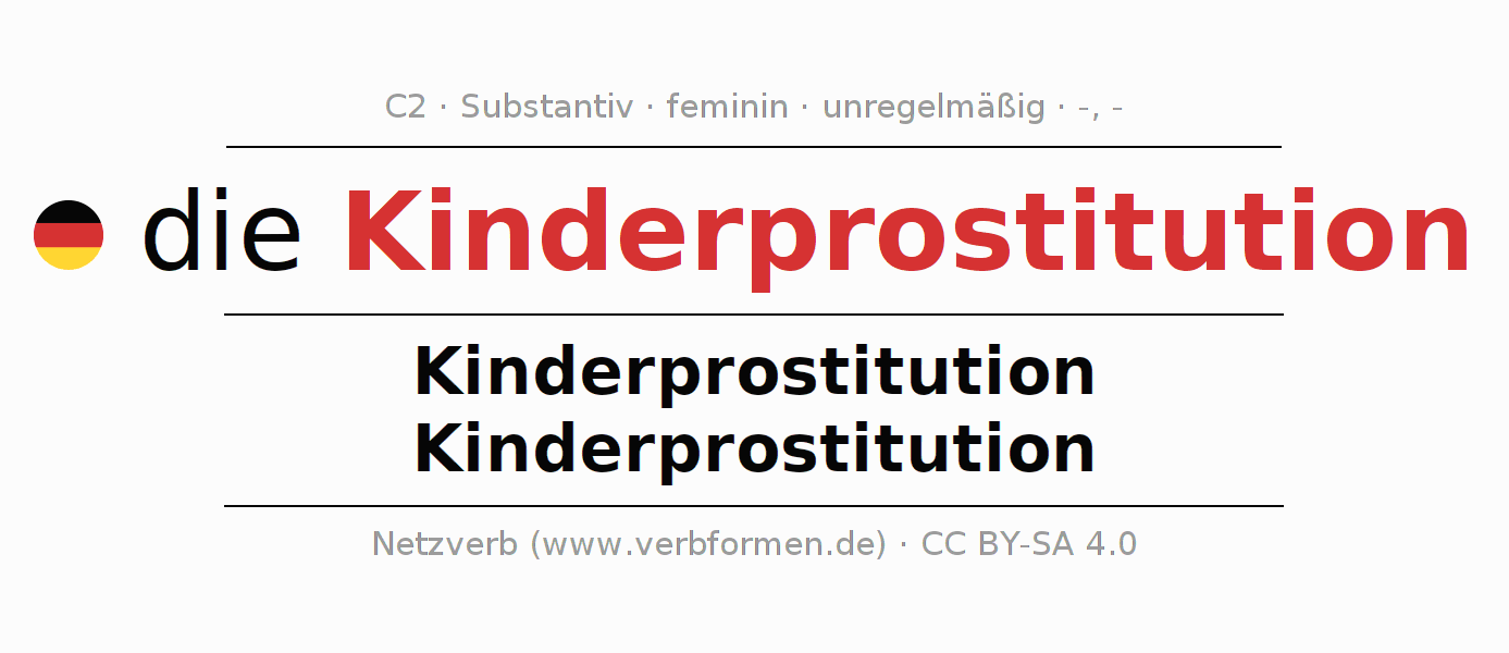 - Singular: die Kinderprostitution, der Kinderprostitution, der Kinderprostitution, die Kinderprostitution