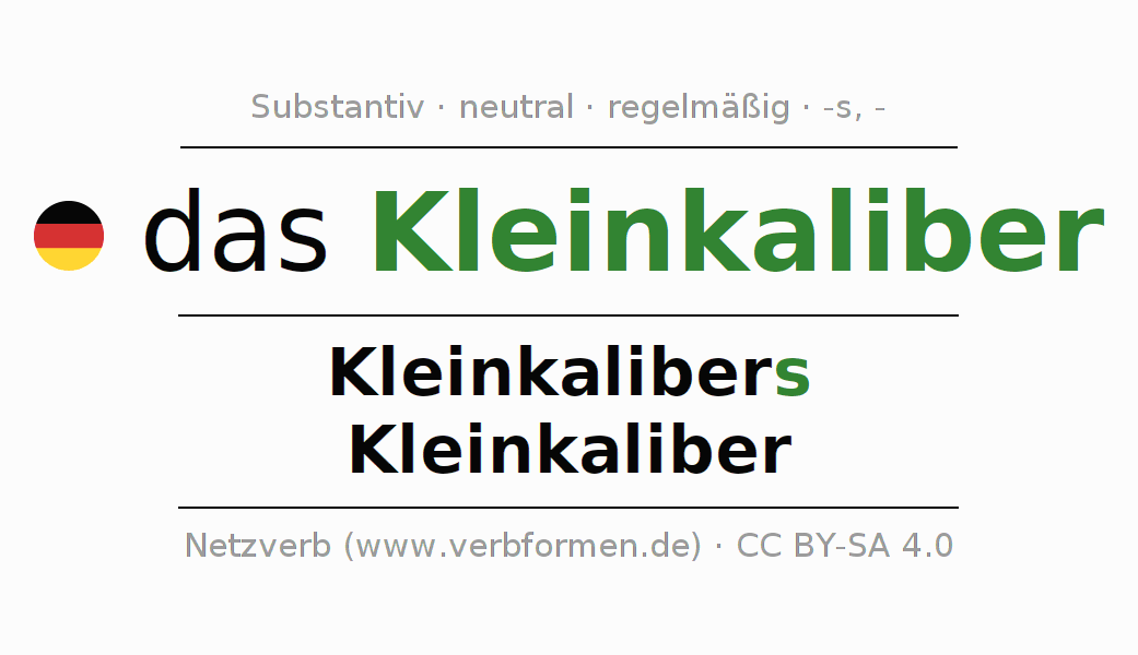- Singular: das Kleinkaliber, des Kleinkalibers, dem Kleinkaliber, das Kleinkaliber