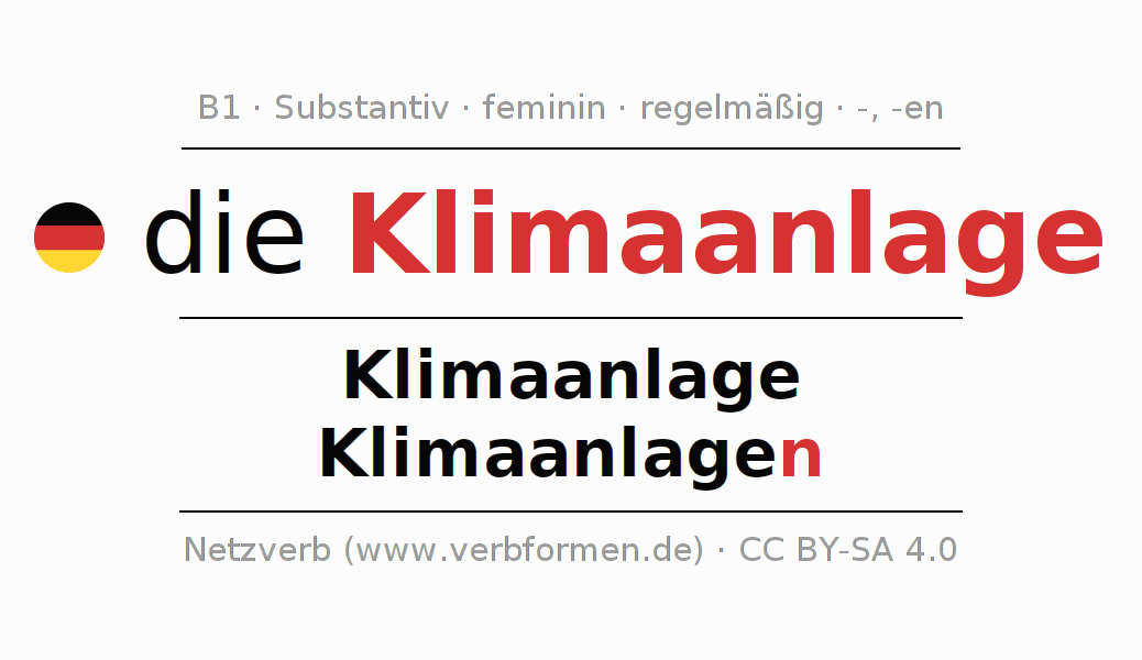- Singular: die Klimaanlage, der Klimaanlage, der Klimaanlage, die Klimaanlage