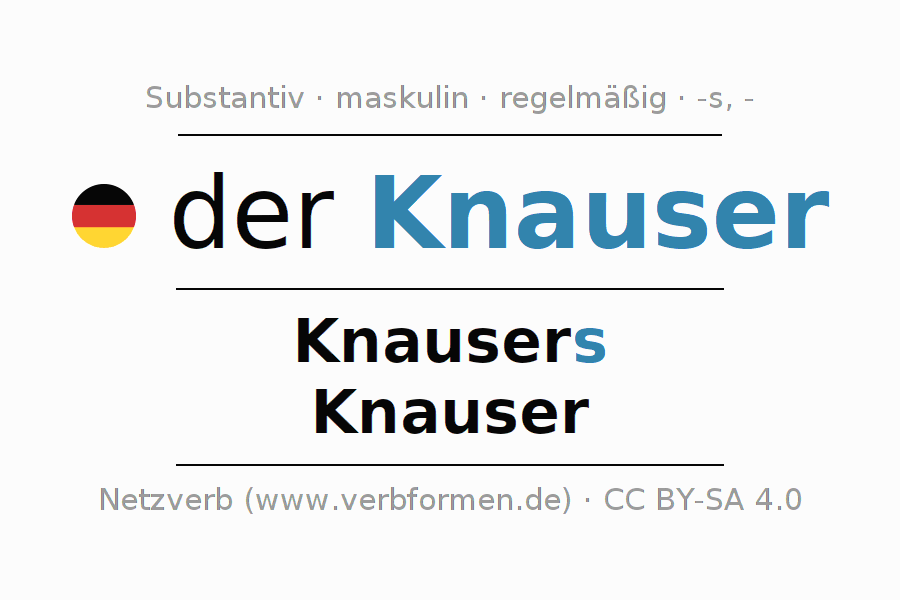 - Singular: der Knauser, des Knausers, dem Knauser, den Knauser
