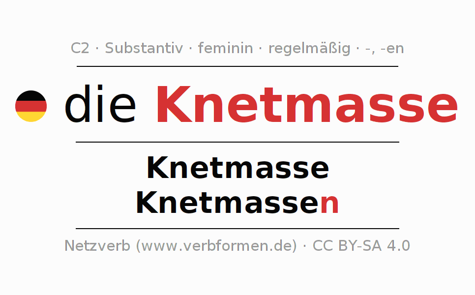 - Singular: die Knetmasse, der Knetmasse, der Knetmasse, die Knetmasse