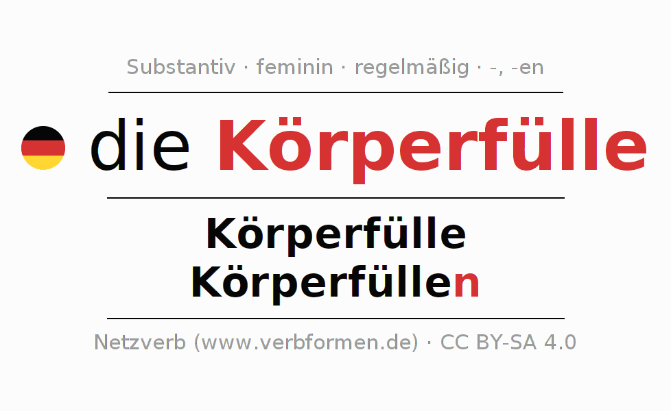 - Singular: die Körperfülle, der Körperfülle, der Körperfülle, die Körperfülle