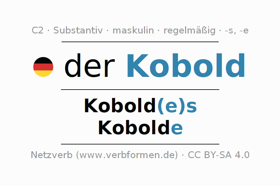 - Plural: die Kobolde, der Kobolde, den Kobolden, die Kobolde