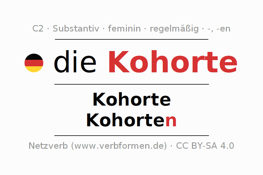 - Singular: die Kohorte, der Kohorte, der Kohorte, die Kohorte