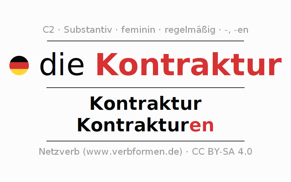 - Singular: die Kontraktur, der Kontraktur, der Kontraktur, die Kontraktur