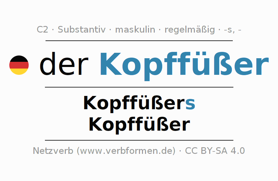- Singular: der Kopffüßer, des Kopffüßers, dem Kopffüßer, den Kopffüßer
