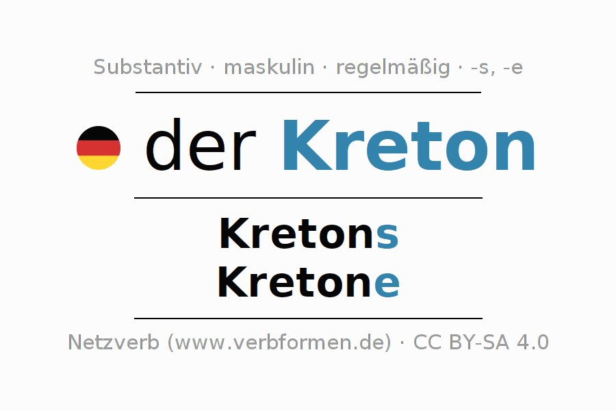 - Plural: die Kretone, der Kretone, den Kretonen, die Kretone
