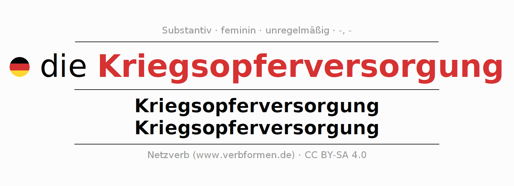 | Akk. | die Kriegsopferversorgung | die Kriegsopferversorgung |