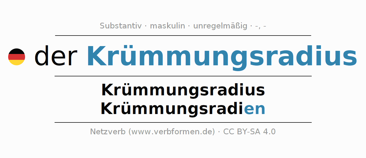 - Singular: der Krümmungsradius, des Krümmungsradius, dem Krümmungsradius, den Krümmungsradius