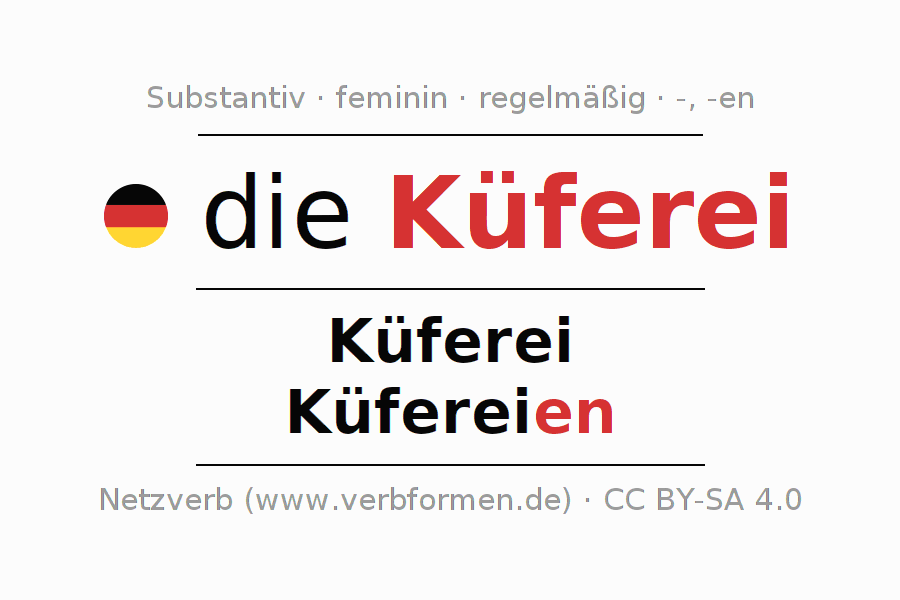 - Singular: die Küferei, der Küferei, der Küferei, die Küferei