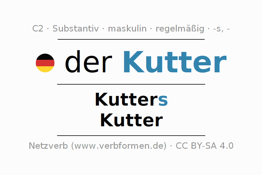 - Singular: der Kutter, des Kutters, dem Kutter, den Kutter
