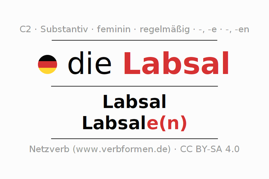 - Singular: die Labsal, der Labsal, der Labsal, die Labsal