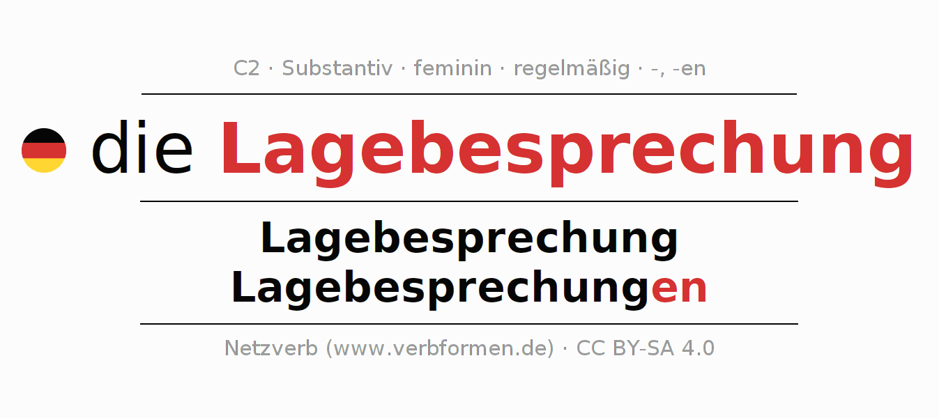 - Singular: die Lagebesprechung, der Lagebesprechung, der Lagebesprechung, die Lagebesprechung