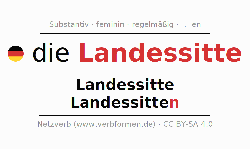 - Plural: die Landessitten, der Landessitten, den Landessitten, die Landessitten