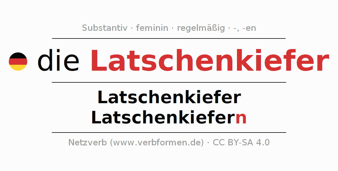 - Singular: die Latschenkiefer, der Latschenkiefer, der Latschenkiefer, die Latschenkiefer