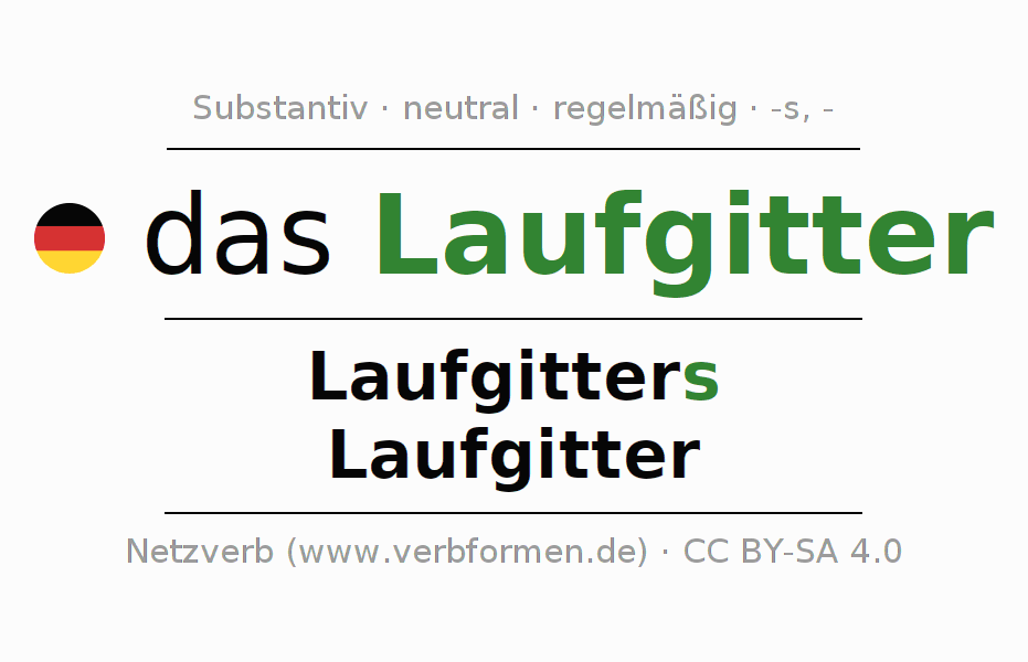 - Singular: das Laufgitter, des Laufgitters, dem Laufgitter, das Laufgitter