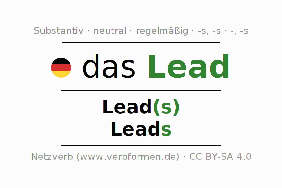 - Singular: das Lead, des Lead(s), dem Lead, das Lead