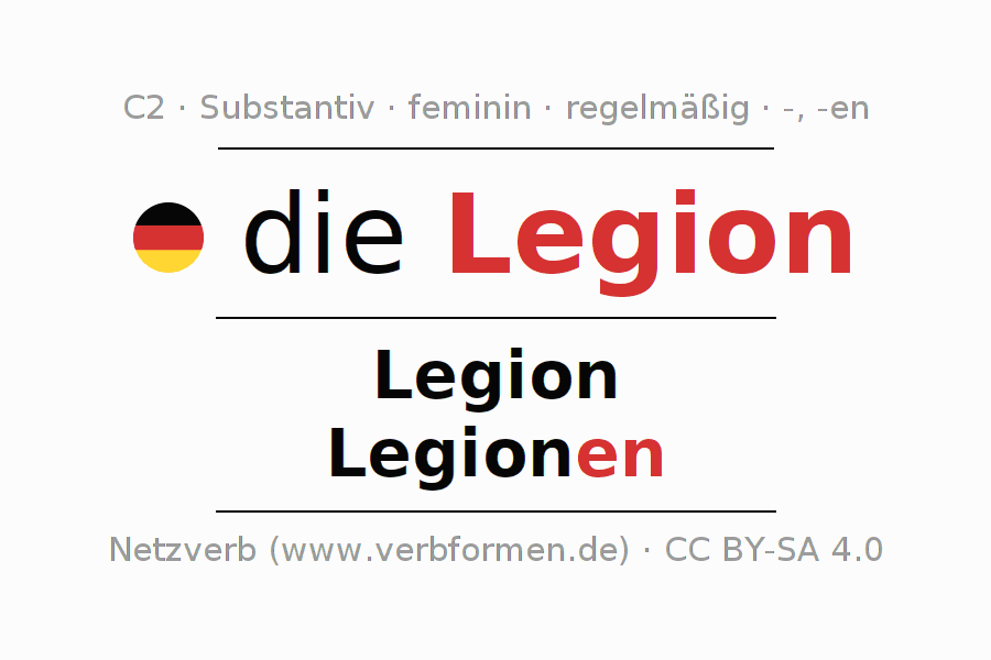 - Plural: die Legionen, der Legionen, den Legionen, die Legionen