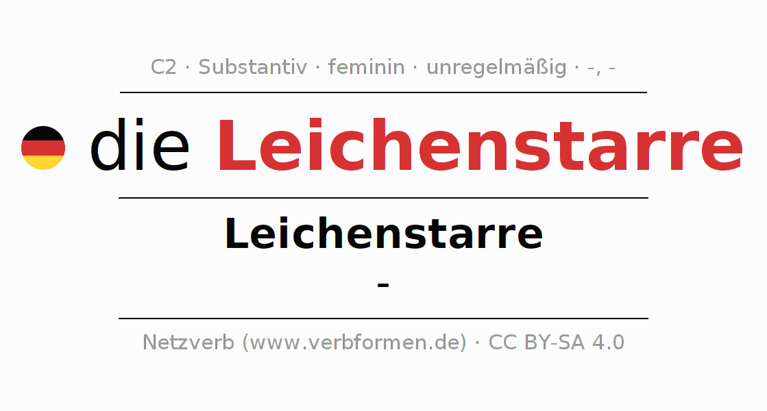 - Singular: die Leichenstarre, der Leichenstarre, der Leichenstarre, die Leichenstarre