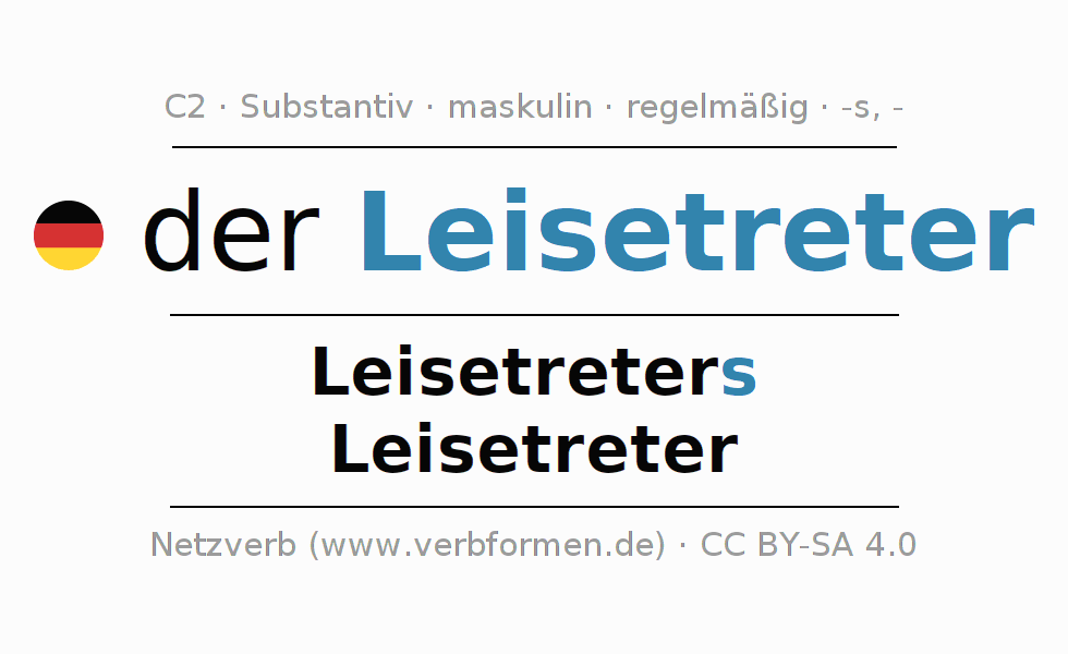 - Singular: der Leisetreter, des Leisetreters, dem Leisetreter, den Leisetreter