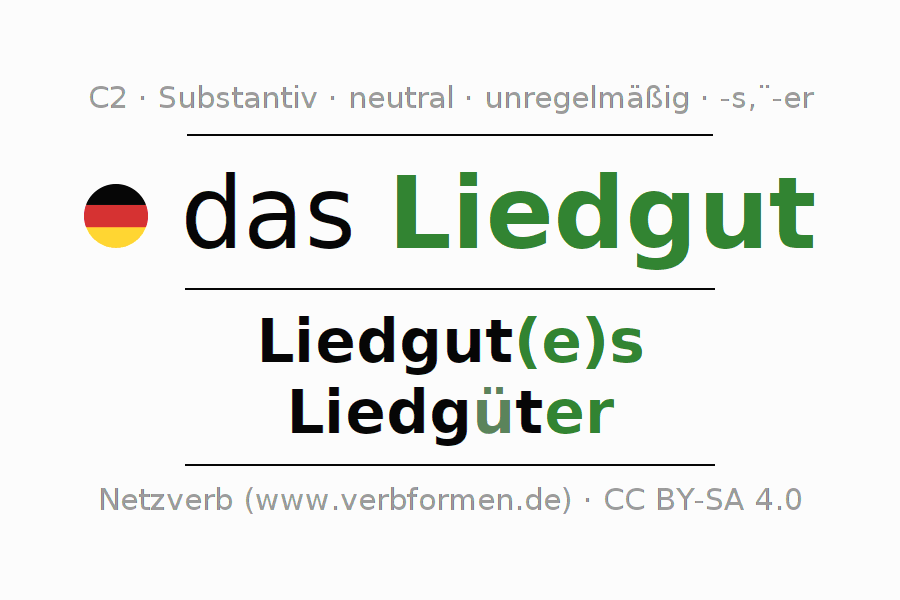 | Dat. | dem Liedgut(e) | den Liedgütern |