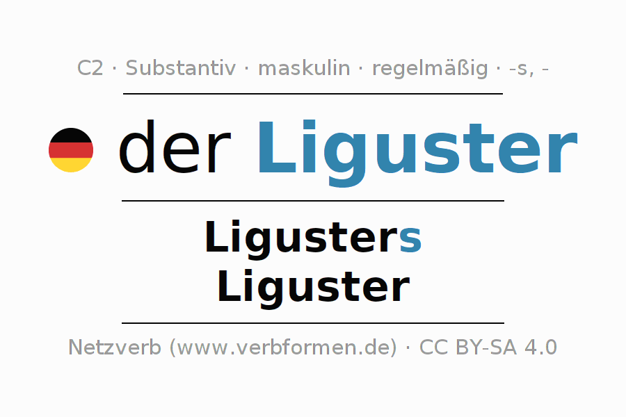 - Singular: der Liguster, des Ligusters, dem Liguster, den Liguster